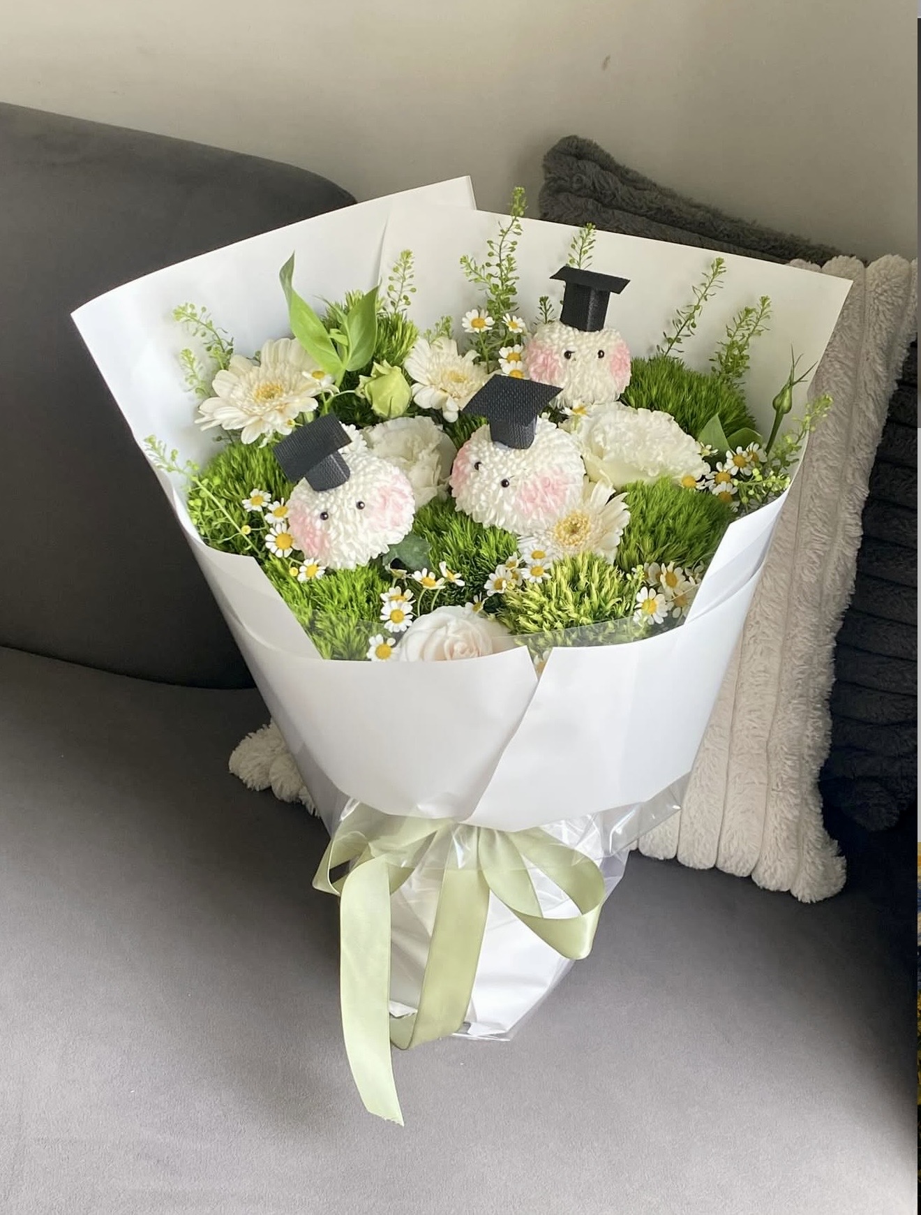Bó hoa cẩm tú cầu xanh lá không rực rỡ nhưng đủ sâu sắc – như một lời nhắn nhẹ nhàng rằng: “Mọi điều rồi sẽ ổn, và bạn luôn xứng đáng với những điều tốt đẹp.”