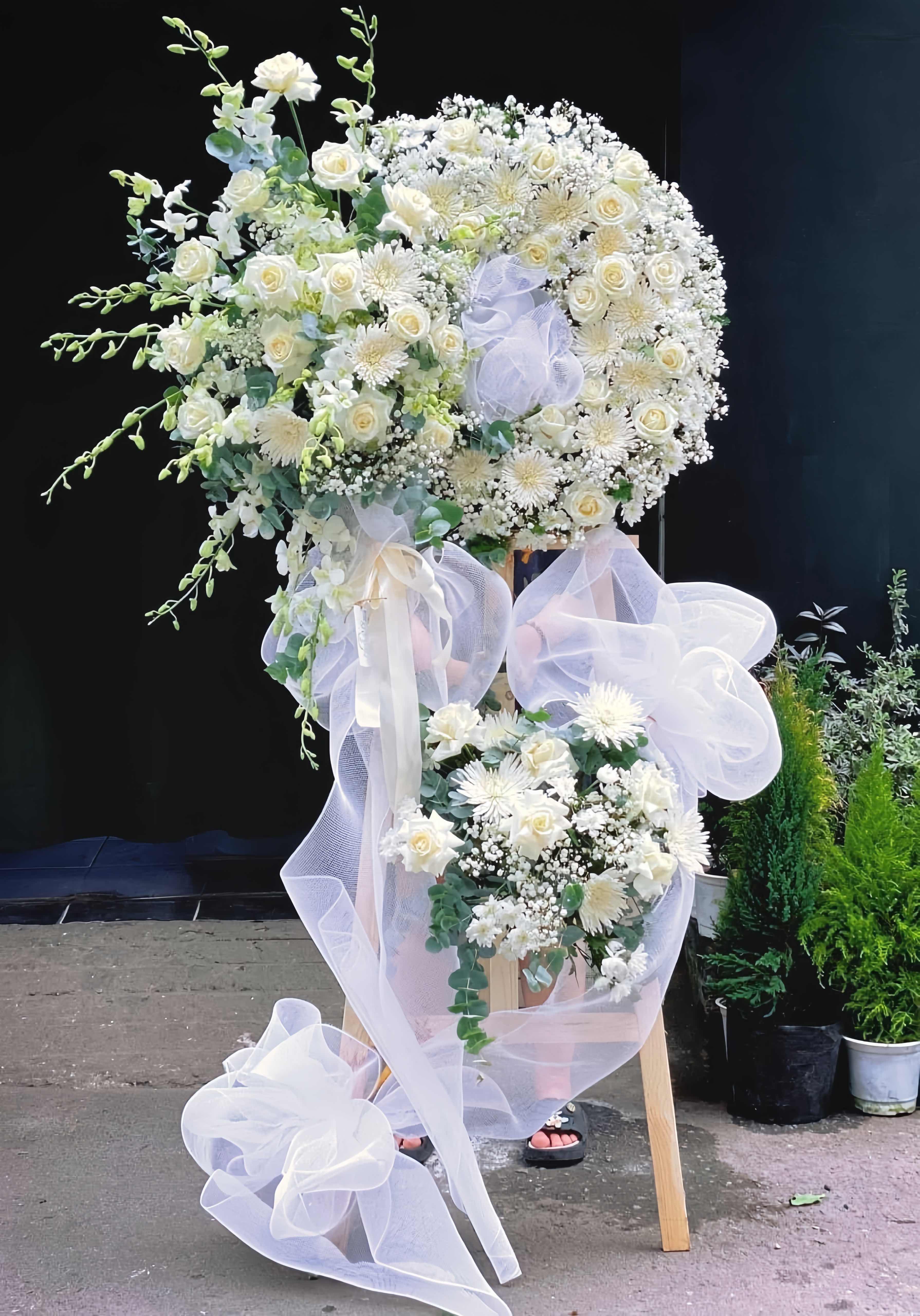 Trong những khoảnh khắc chia ly, khi lời nói trở nên khó cất thành lời, một kệ hoa viếng đám tang chính là cách thể hiện sự thành kính, chia buồn và tôn trọng dành cho người đã khuất. Mỗi vòng hoa, kệ hoa không chỉ mang vẻ đẹp trang nhã mà còn gửi gắm lời chúc bình an, mong cho linh hồn người mất được an nghỉ, đồng thời sẻ chia nỗi đau cùng gia quyến.