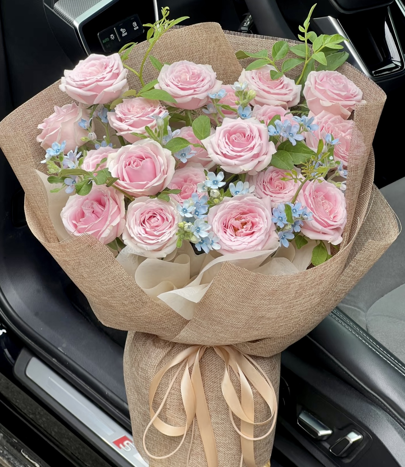 Hoa bao gồm: 19 hoa hồng pastel mix cùng hoa lam tinh nhập khẩu.