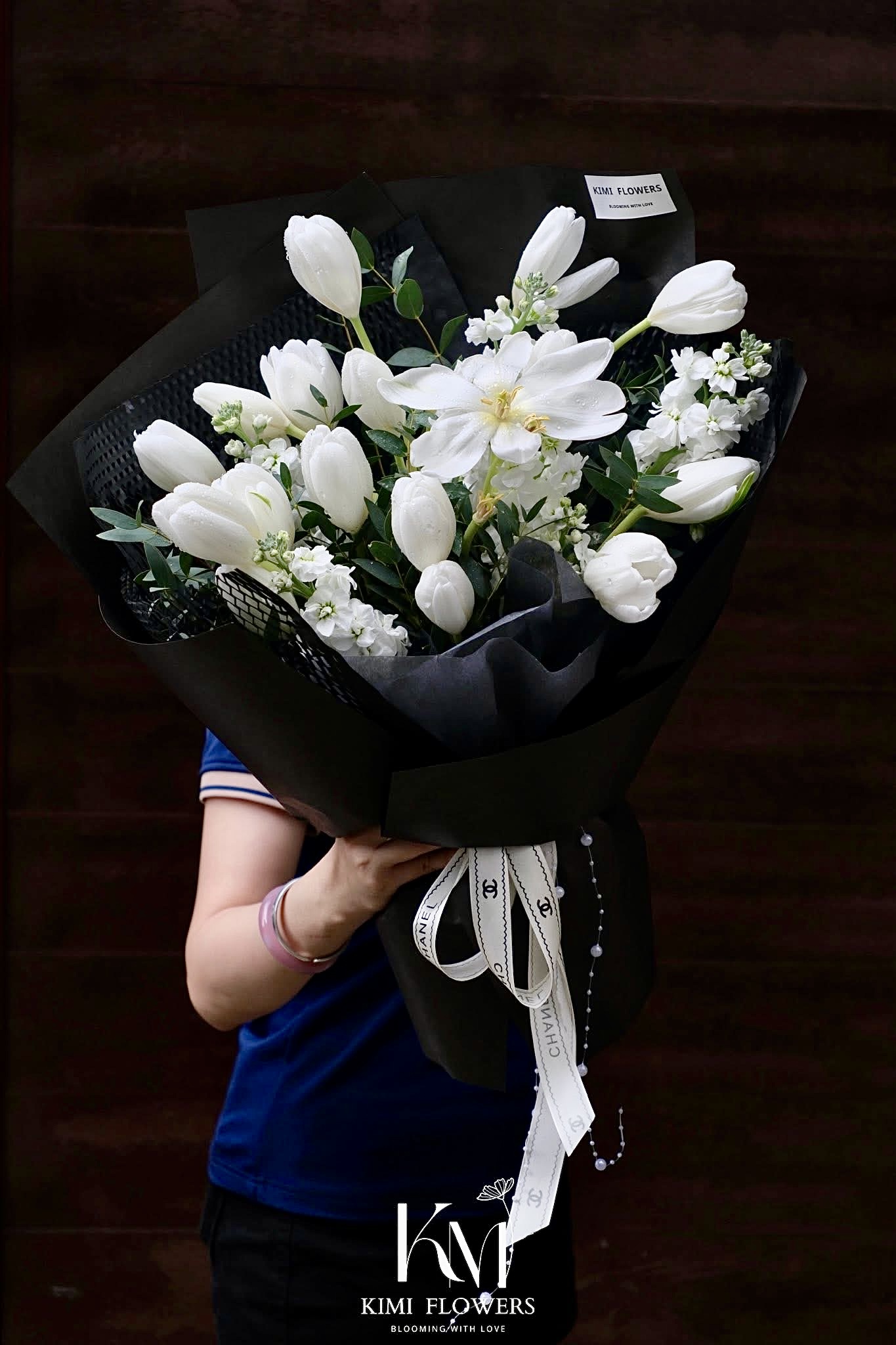 Hoa nhập khẩu có: tulip mix phi yến trắng tinh khôi.