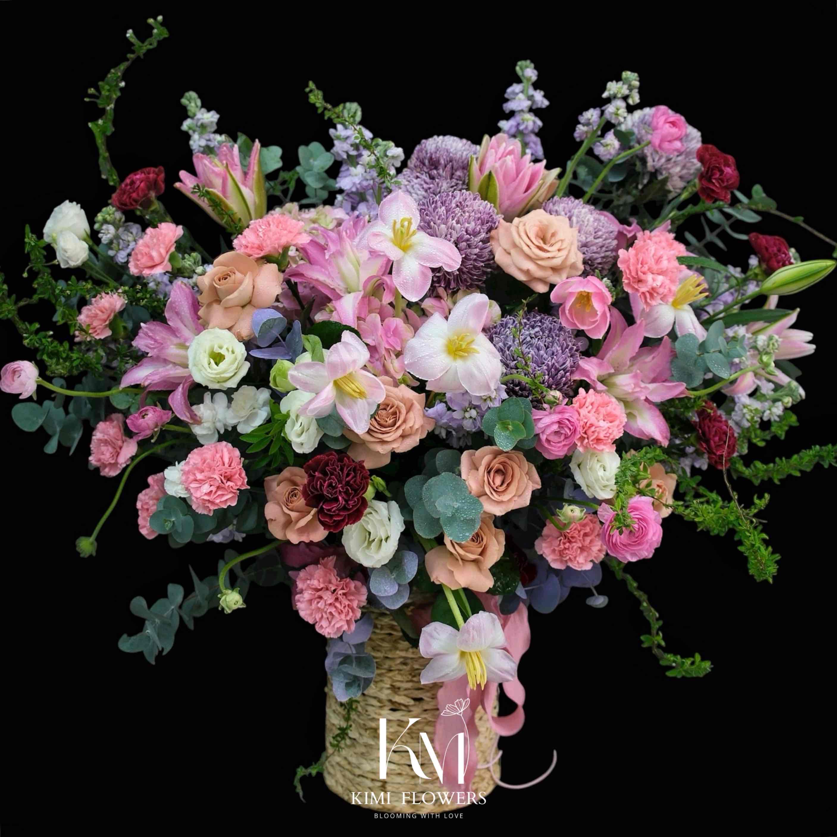 Hãy để KIMI Flowers giúp bạn tạo nên khoảnh khắc đáng nhớ bằng những giỏ hoa tone hồng ngọt ngào – món quà tinh tế cho mọi dịp đặc biệt.